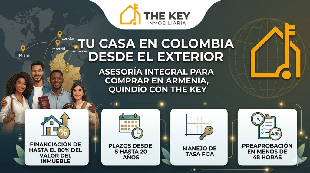 A través de nuestro aliado tramitamos todo el proceso para colombianos que viven en el exterior y quieren comprar su vivienda en Colombia, de manera 100% virtual, con atención personalizada, proceso directo con bancos colombianos y seguridad y confianza.